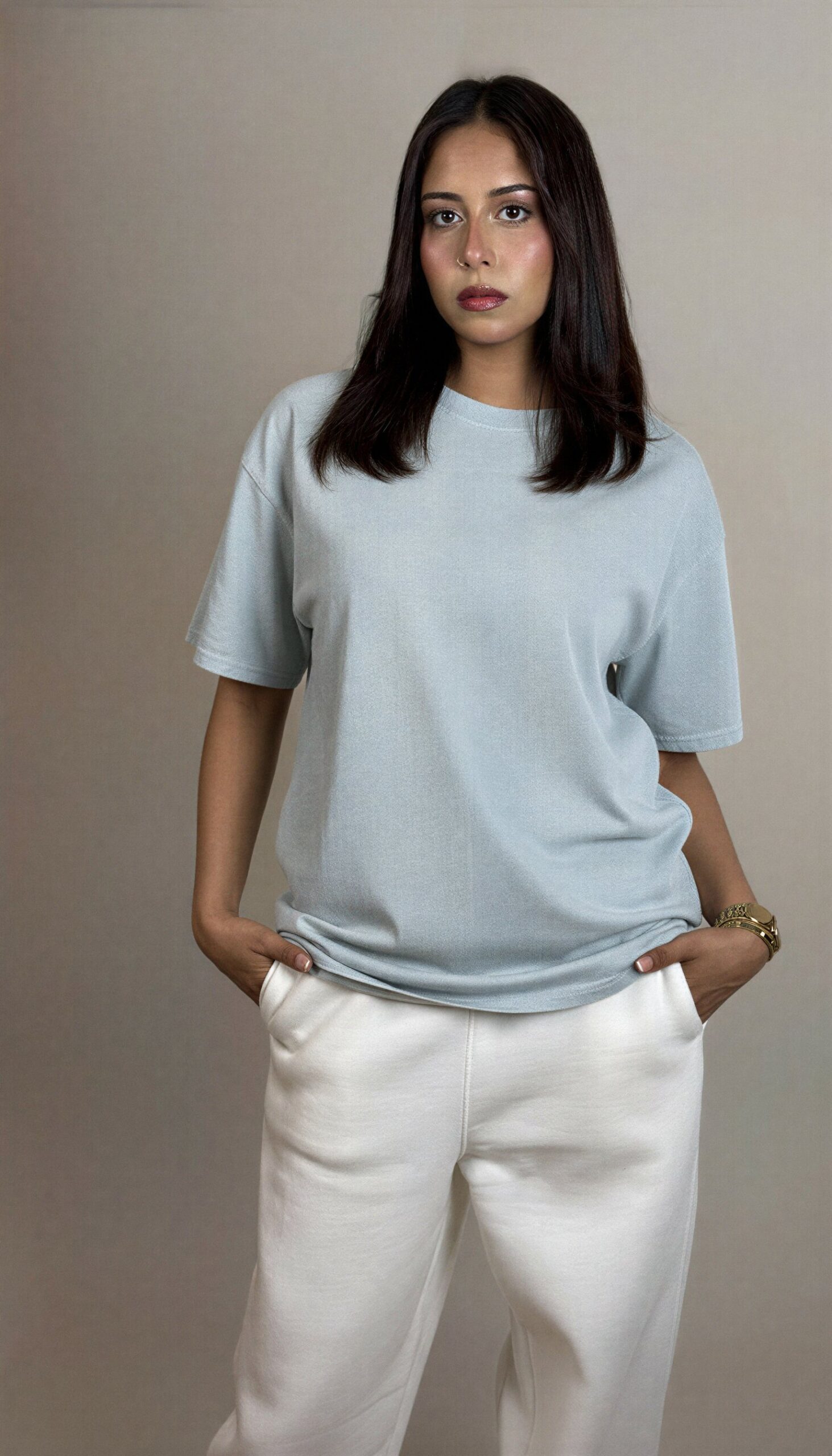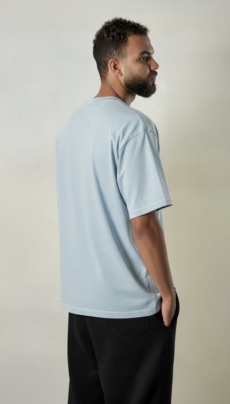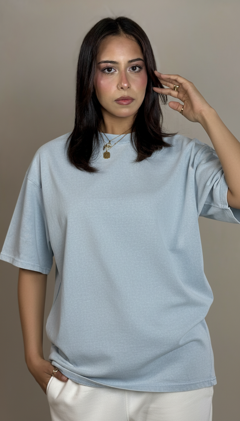 Light blue, washed out, and full of character. The Baby Blue Stone-Washed tee brings that perfect vintage summer energy — unique every time, easy to style every day.