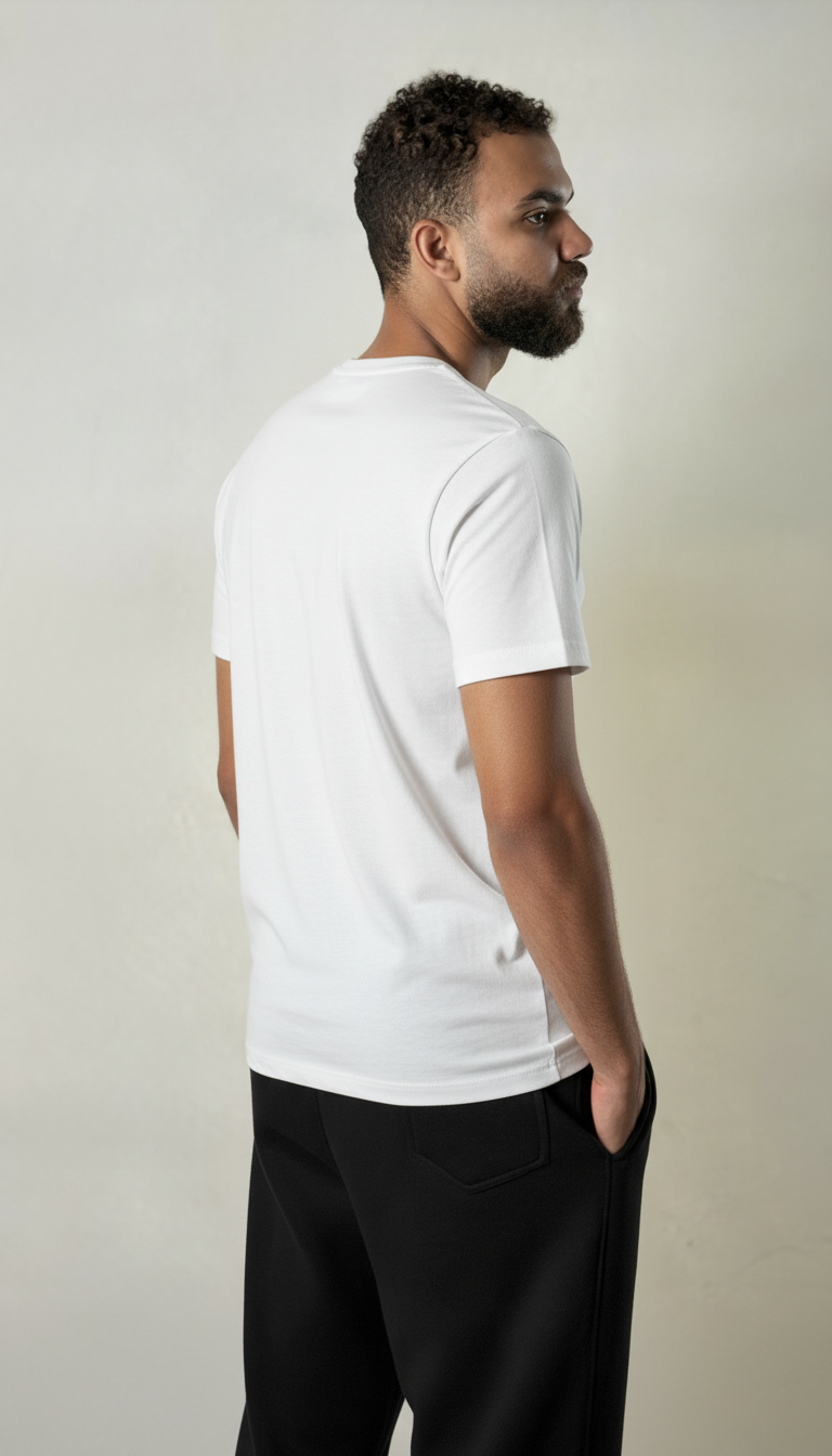 The white basic tee you’ll reach for every single day. Clean, soft, and endlessly versatile — built for those who let the fit do the talking.